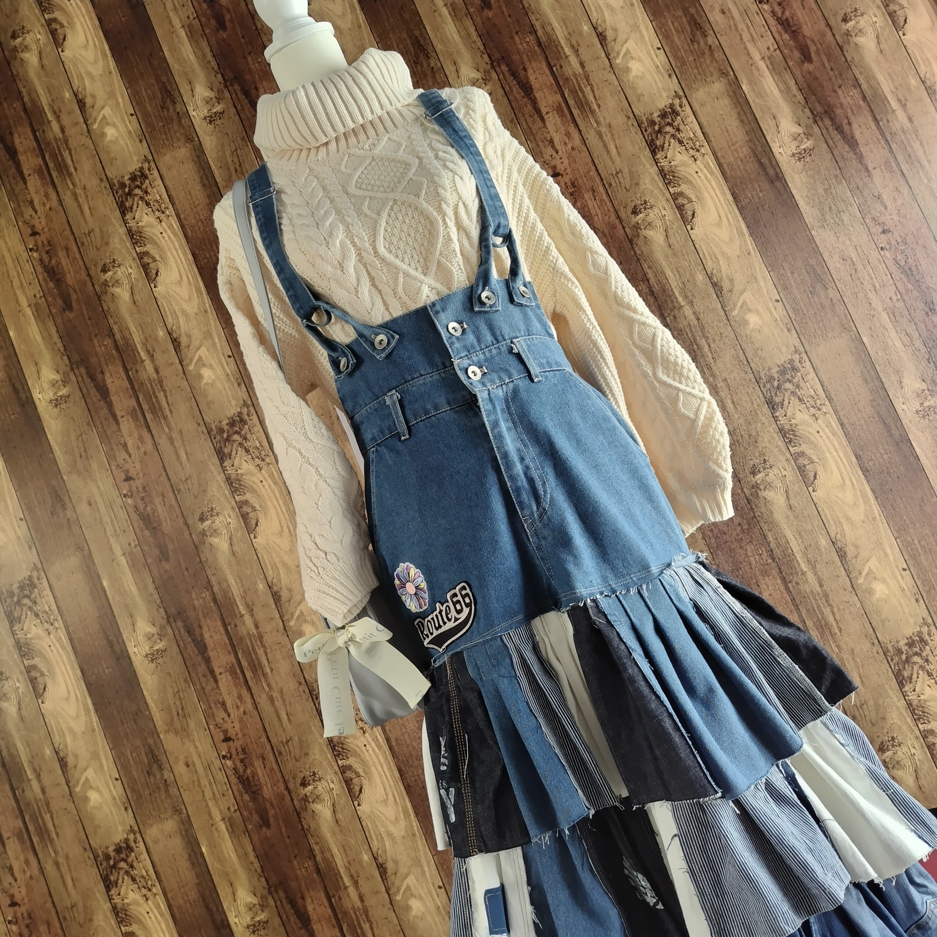 この素敵なフリルパッチワークサスペンダースカートで、新しいオシャレを楽しんでみませんか?