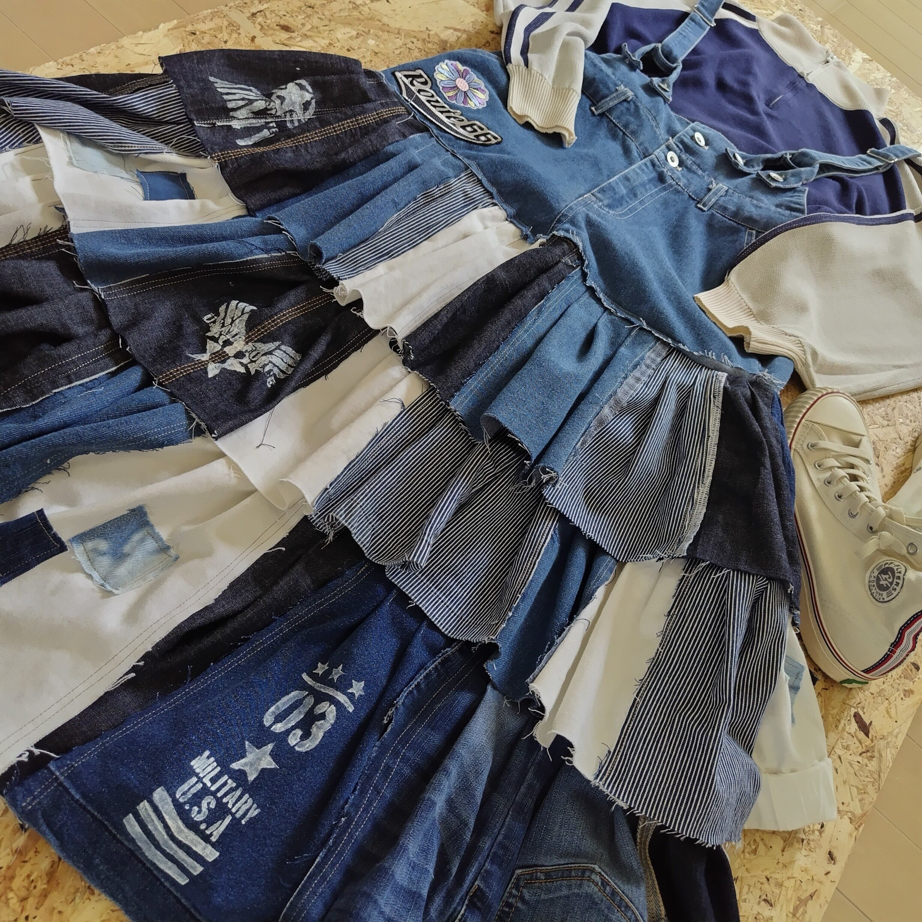 このフリルパッチワークサスペンダースカートは、フリルたっぷりのデザインと手の込んだパッチワークが特徴の魅力的なアイテムです。見た目にも楽しく、個性を引き立てるスタイルで、周囲の視線を惹きつけます!